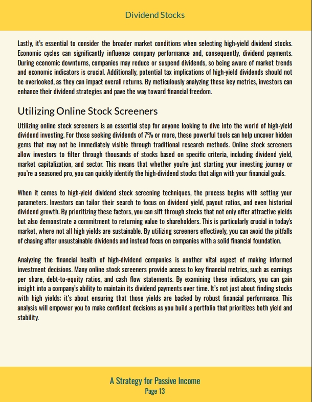 "Dividend Stocks: A Strategy for Passive Income" is your gateway to financial stability through smart investing. This guide demystifies the world of dividend investing, proving that building wealth isn't just for Wall Street experts. With practical strategies you'll learn how to identify promising stocks and construct a resilient portfolio.